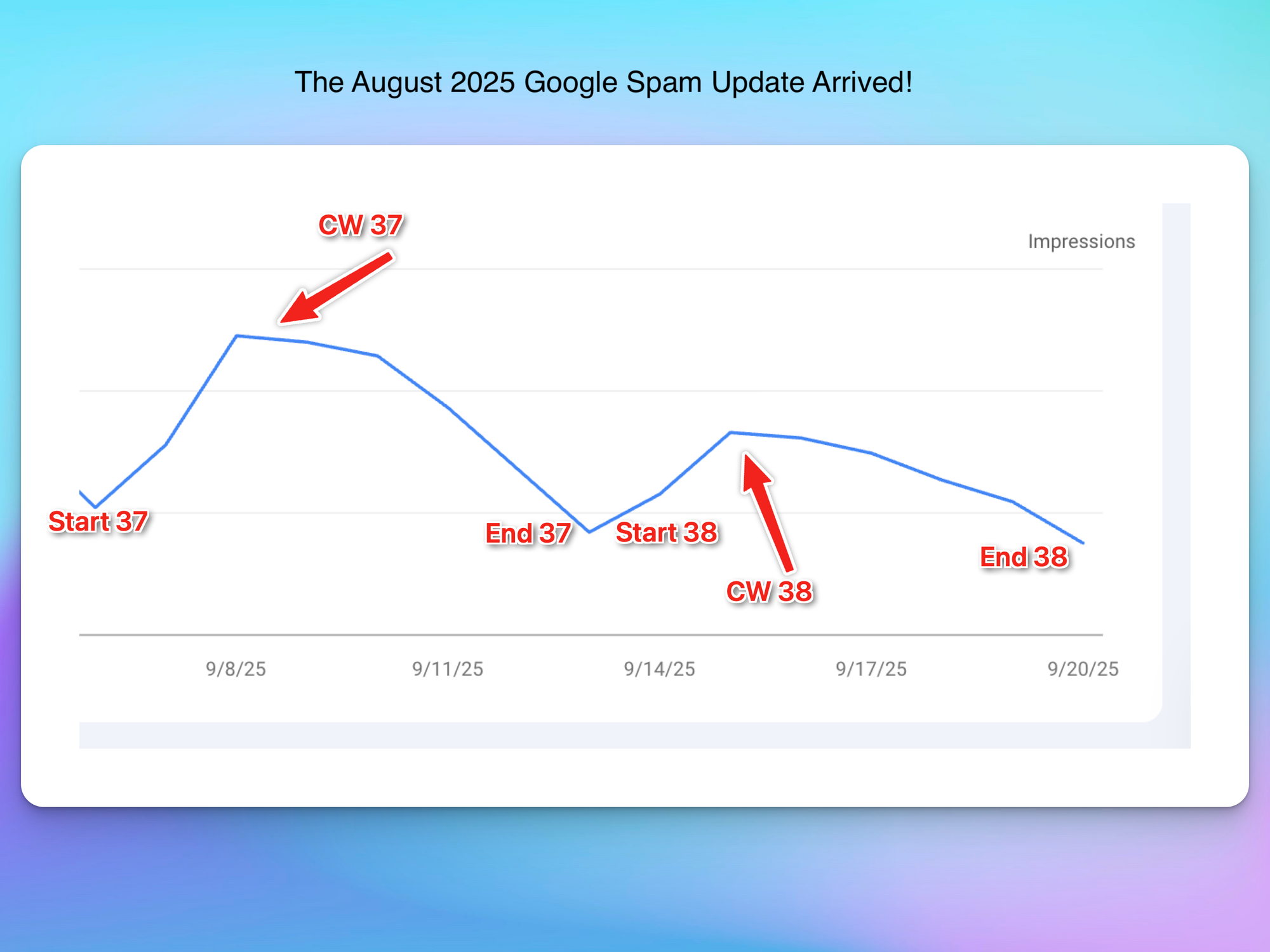Sometimes, the effect of the spam update is already present weeks before the rollout. If you see a drop before August 26th, consider this the start of your event window.