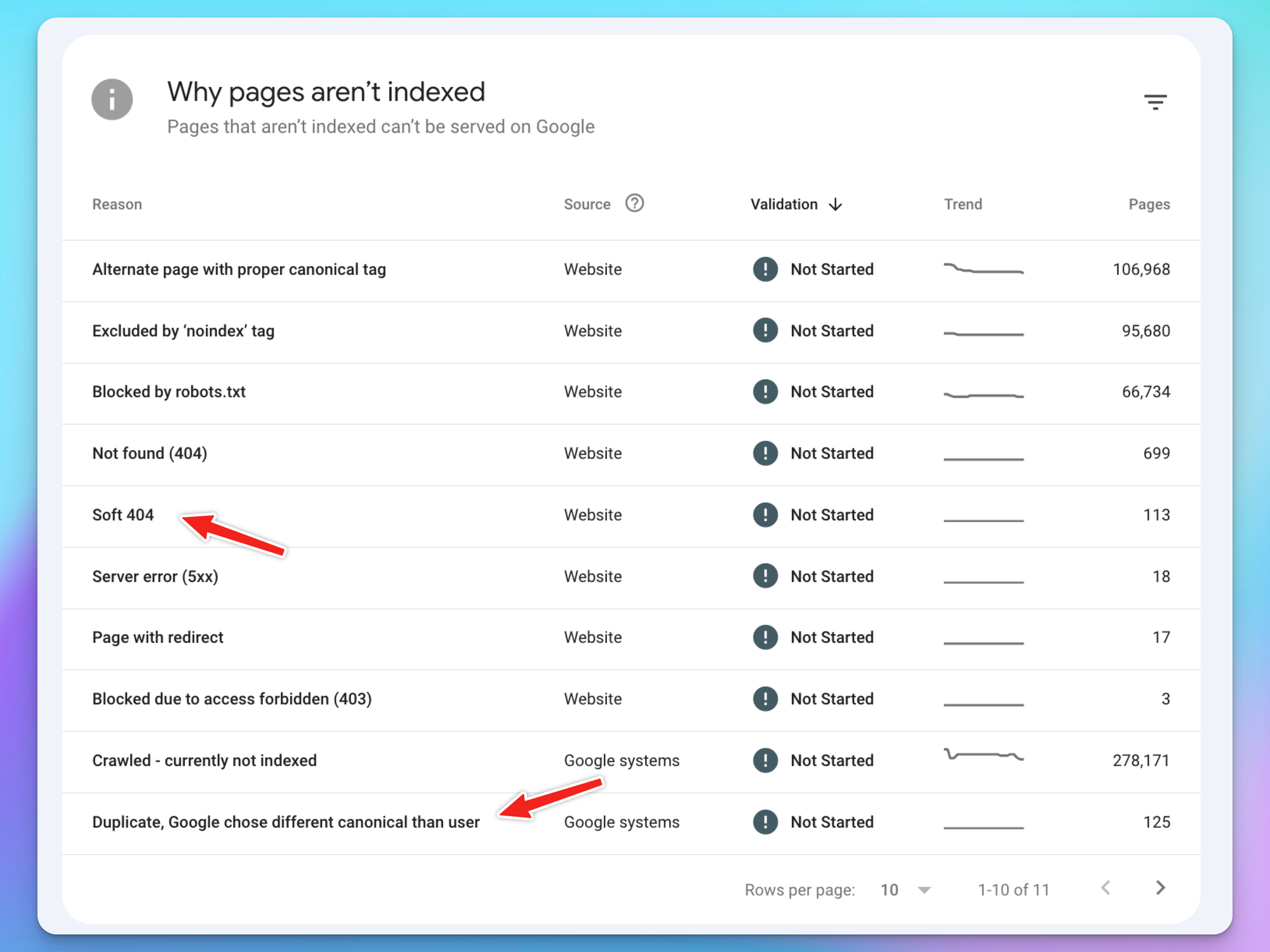Monitor programmatic pages (category pages, salary reports, employer pages) and blog pages that Google moves from indexed to any of the categories crawled, not indexed: