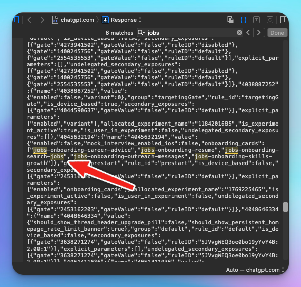 I found something interesting in ChatGPT's page source - feature flags that suggest OpenAI is testing job search functionality.
